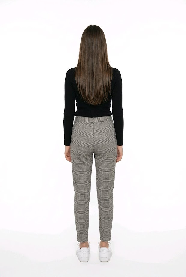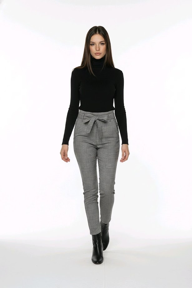 BeschrijvingAmara – Elegante Ruit Tregging Met Tailleband Om Te Strikken