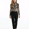 Baroquea is een elegante bodysuit in huidskleur met een verfijnd zwart fluwelen barokpatroon. Het aansluitende model en de zachte stof zorgen voor een comfortabele en stijlvolle pasvorm.