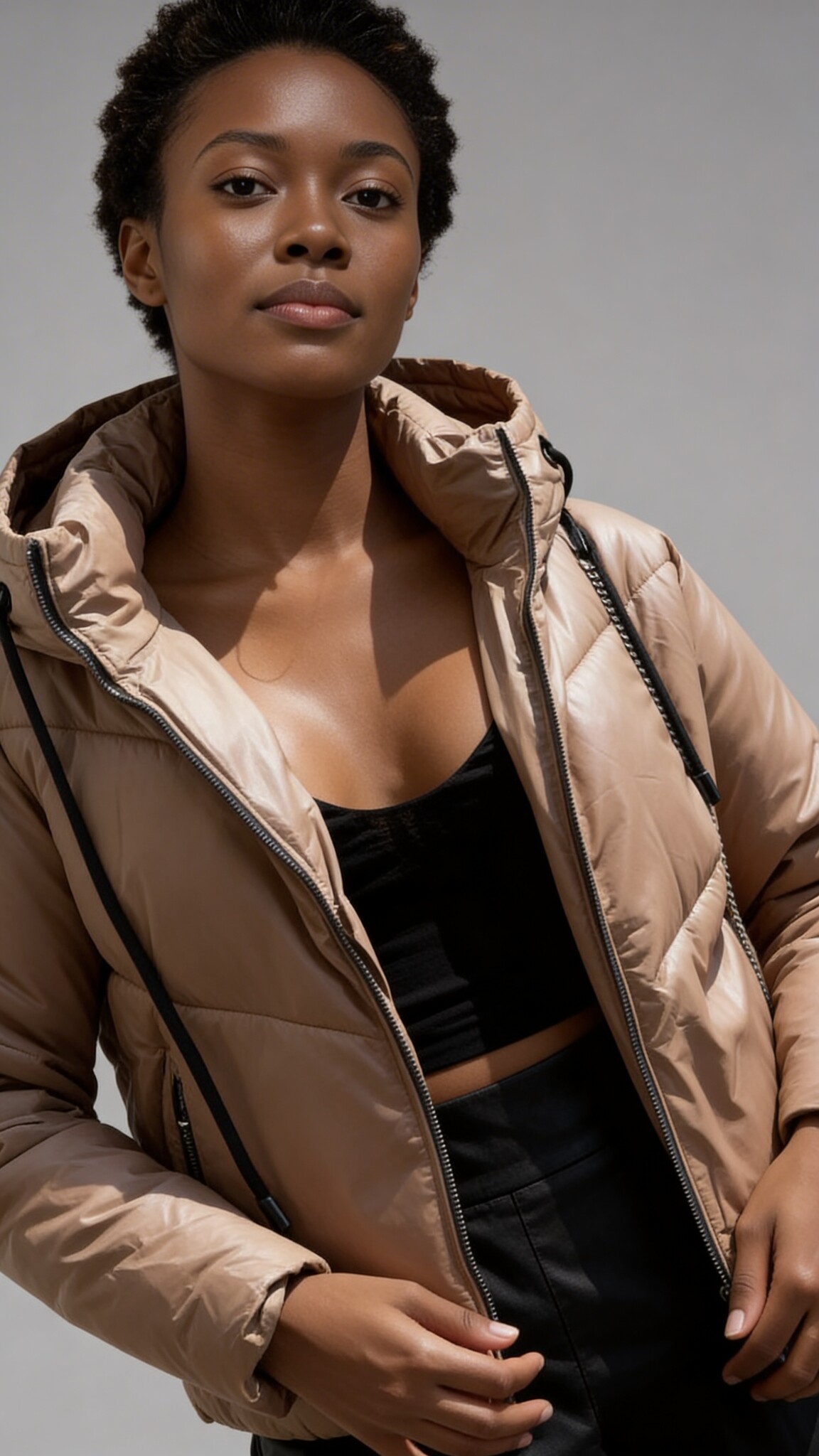 BeschrijvingCalista – Dik Gewatteerd Faux Leren Jack -Capuchon