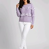 Calyra is een lila trui met verfijnde kanten ruches aan de voorzijde die zorgen voor een vrouwelijke uitstraling. De gelaagde mouwen geven het model een speels en trendy accent.