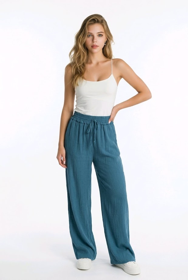 - Stijl: Wijde broek.