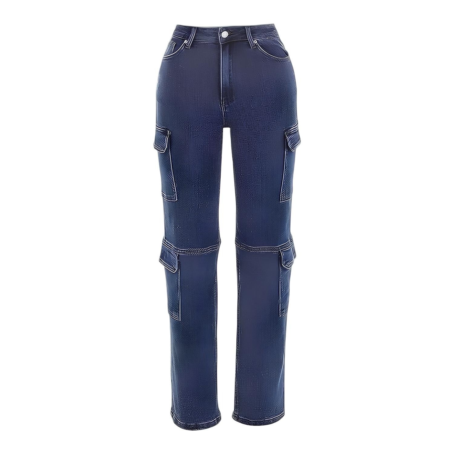 BeschrijvingCargo Jeans - Hoge Taille - Comfortabele Pasvorm