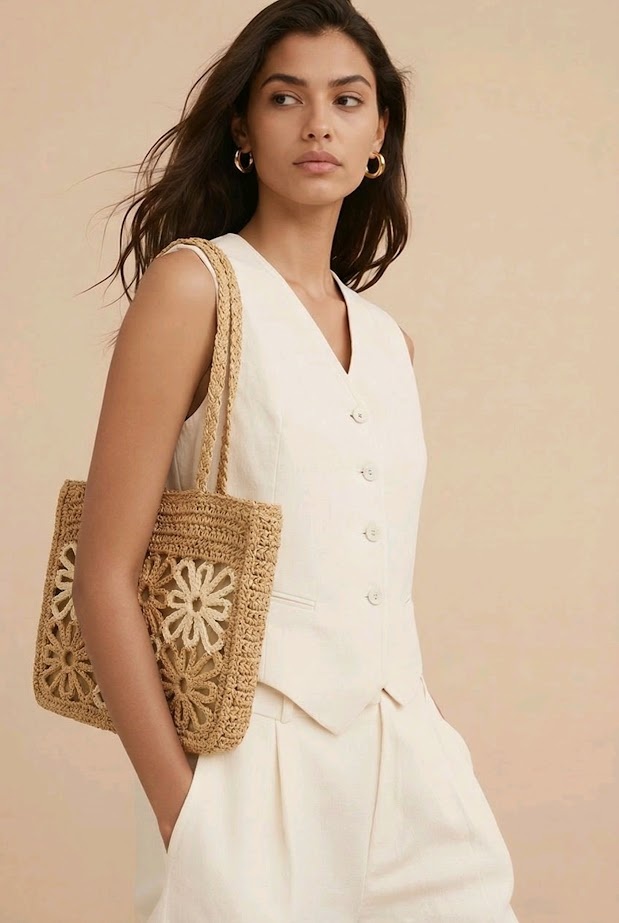 - Materiaal: Gevlochten papier en polyester, wat zorgt voor een lichte en duurzame tas.