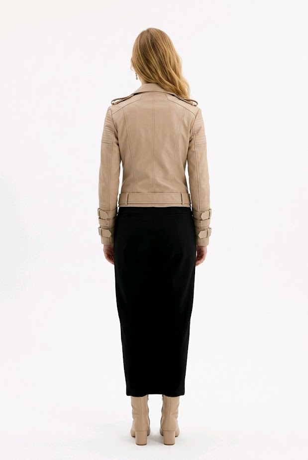 BeschrijvingTriniti Leder Biker Jack -Beige