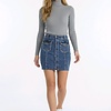 Darelia is een stoere denim rok met opvallende studs en een knopensluiting aan de voorkant. De praktische zakken en lichte stretch zorgen voor comfort en een mooie pasvorm.