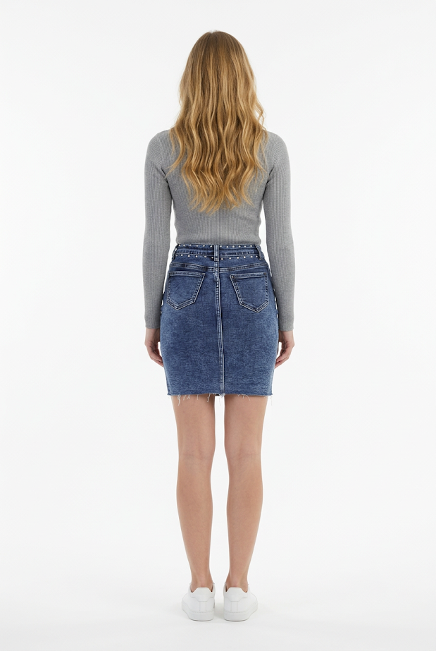 BeschrijvingDarelia – Spijkerrok met Studs en Knopensluiting