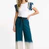 Deze palazzo broek combineert een trendy denim-look bovenkant met een witte onderkant voor een stijlvolle contrastlook.