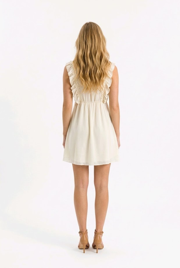 Liva is een elegante beige skaterjurk met fijn borduurwerk en speelse rouches. De elastische tailleband zorgt voor een flatterende pasvorm, terwijl de soepel vallende stof zorgt voor comfort en een romantische, vrouwelijke uitstraling.