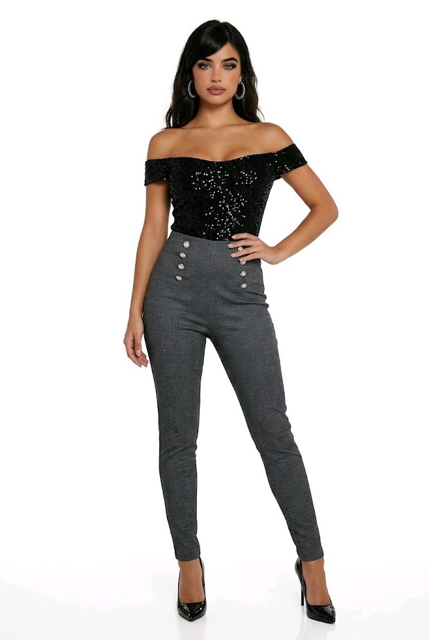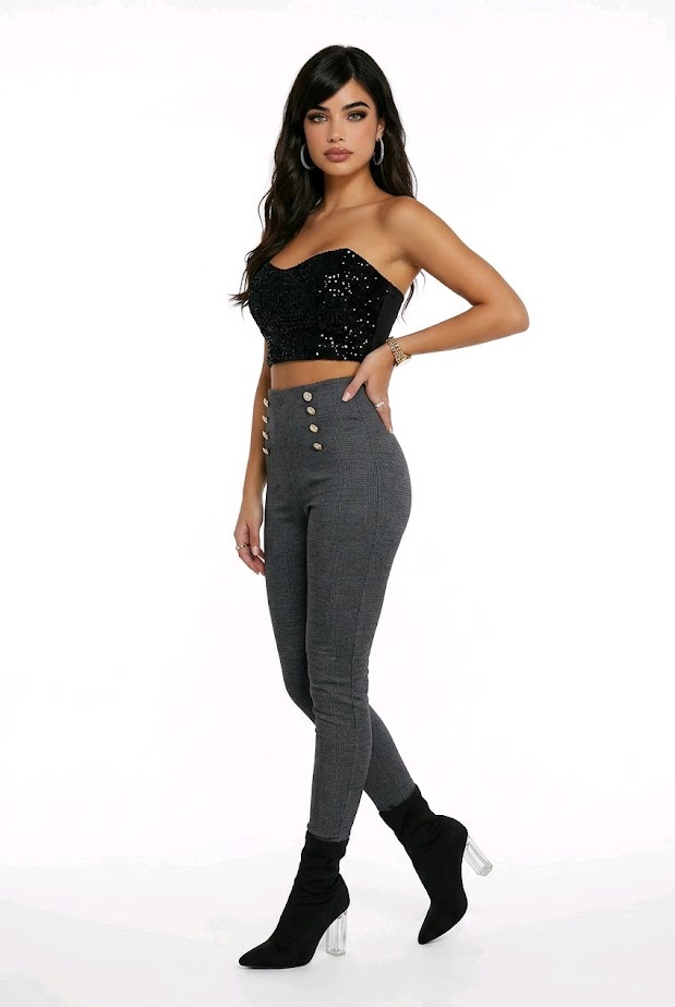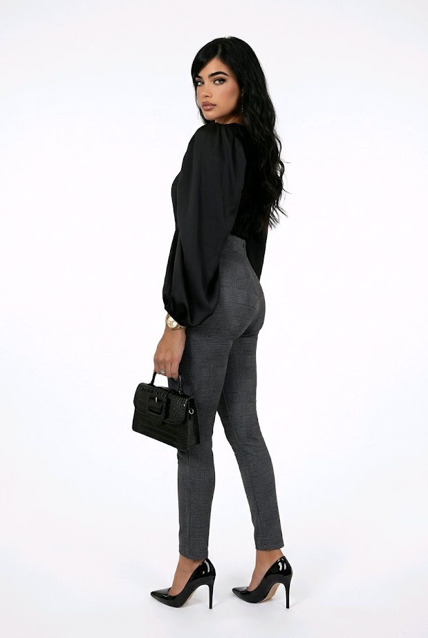 BeschrijvingElena – Elegante Ruit Tregging Met Elastische Taille