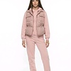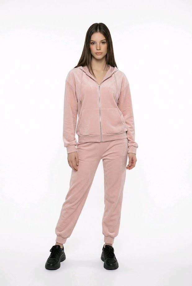 Elin is een dik 3-delig joggingpak in zachtroze, bestaande uit een joggingbroek, hoodie met rits en een gewatteerde bodywarmer. De zachte binnenkant en comfortabele pasvorm maken deze set perfect voor koude dagen met een sportieve, trendy uitstraling.