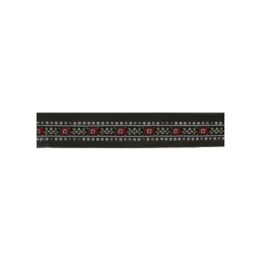 Olijfkleurige riem met kleurrijk bloemenpatroon en gedetailleerde studs. Lengte 90 cm voor een comfortabele pasvorm en veelzijdige styling, perfect om elke outfit een speels accent te geven.