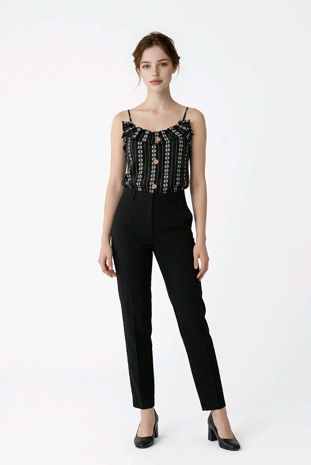 • Kleur: Zwart met witte bloemen details