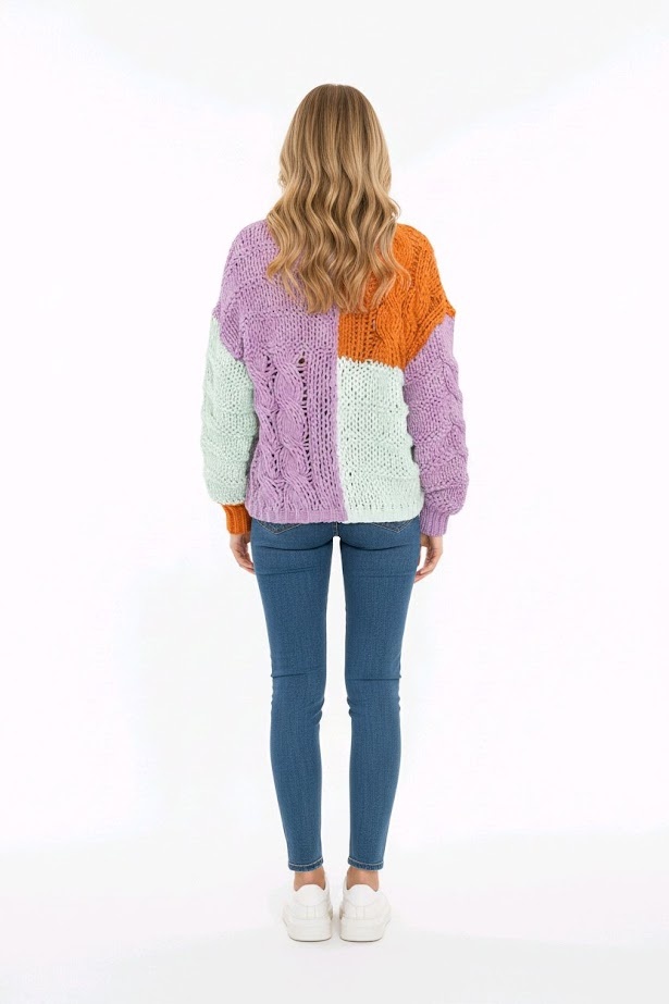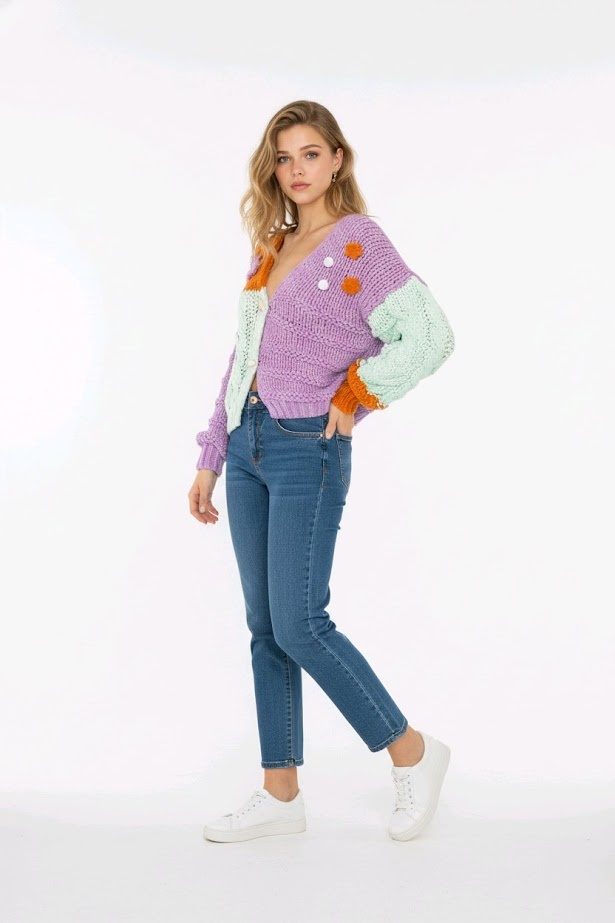 Uniek en speels vest met levendige kleuren en gebreide bloemdetails. Ideaal voor een vrolijke en trendy look.