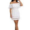 Jolie is een frisse, vrouwelijke jurk die perfect is voor zonnige dagen en zomerse gelegenheden. Het opengewerkte borduurwerk en de speelse ruffle rand geven deze witte jurk een romantische flair. De off-shoulder snit laat de schouders subtiel zien.