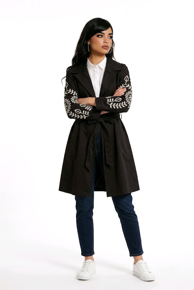BeschrijvingLena – Trenchcoat Met Geborduurde Mouwen