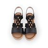 Elegante sandalen met sleehak in zwart imitatieleer. Versierd met glimmende banden en houten kralen voor een natuurlijke, verfijnde look. Comfortabel én stijlvol voor elke zomerse gelegenheid.
