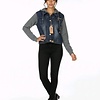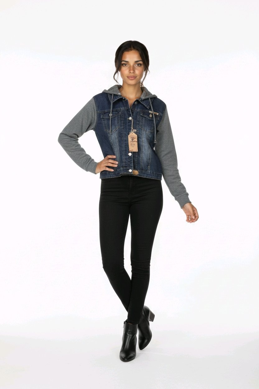 Maelys is een stijlvol denim jack met stretch en een afneembare capuchon. De combinatie van stoere denim en zachte sweatermouwen zorgt voor comfort en een trendy uitstraling. Perfect voor een casual maar verzorgde look.