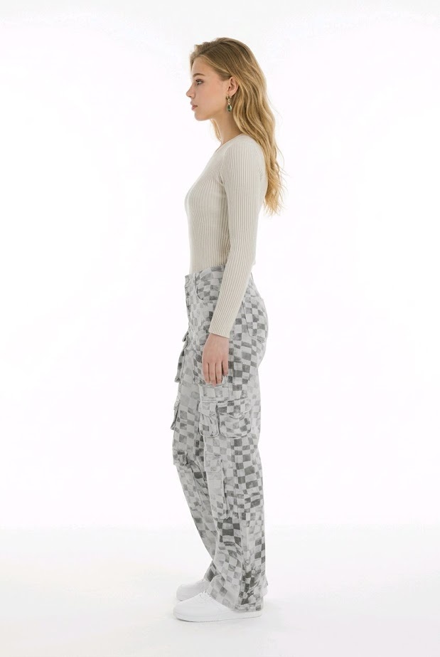 Deze cargobroek is een echte blikvanger dankzij het grafische blokkenmotief in grijstinten. De rechte pijpen en de grote cargozakken zorgen voor een stoere, urban look. Het stevige katoenen materiaal maakt deze broek perfect voor dagelijks gebruik.