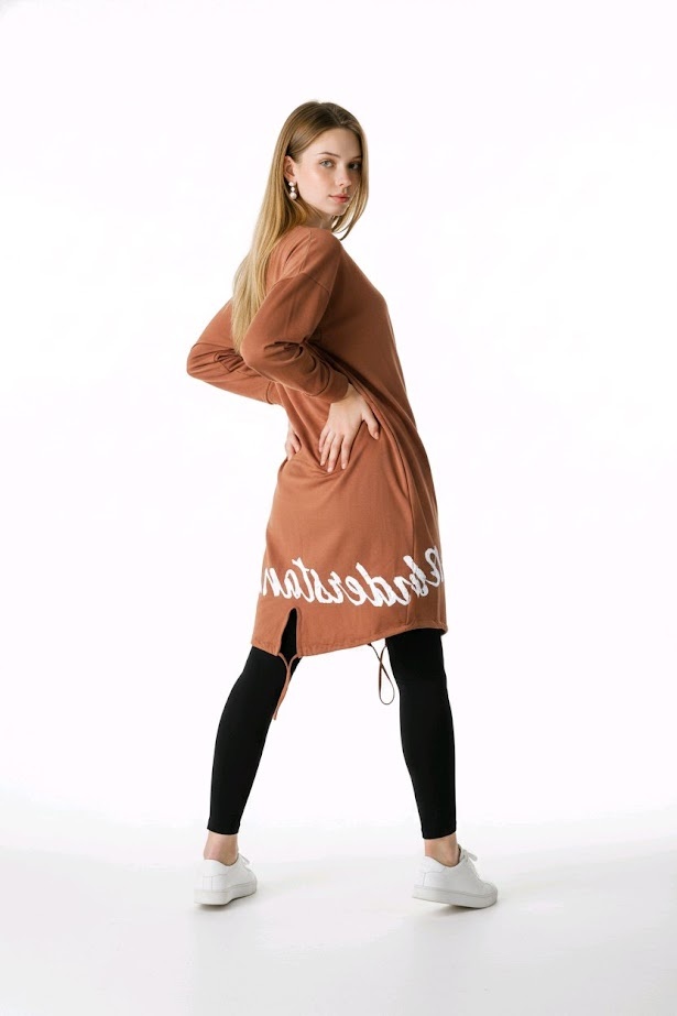 Nova is een lang en luchtig vest dat perfect is voor de lente. de opvallende tekst op de achterkant zorgt voor een trendy touch. Dankzij het aantrekkoord onderaan creëer je eenvoudig aansluitend silhouet.