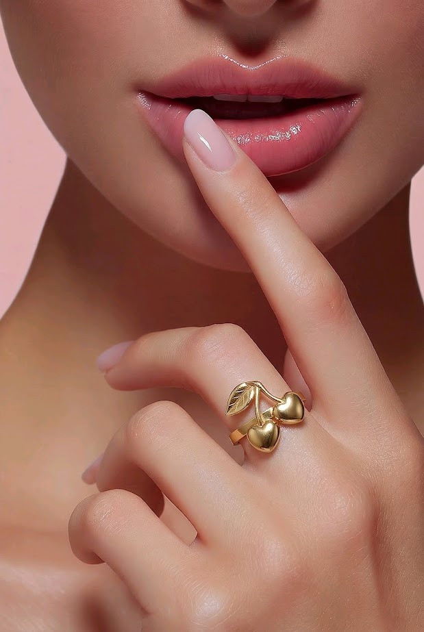 Dames goudkleurige ring met een kersontwerp is een unieke en stijlvolle toevoeging aan je sieradencollectie