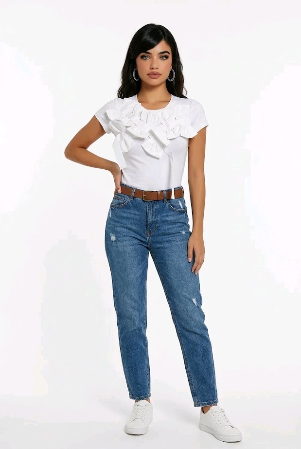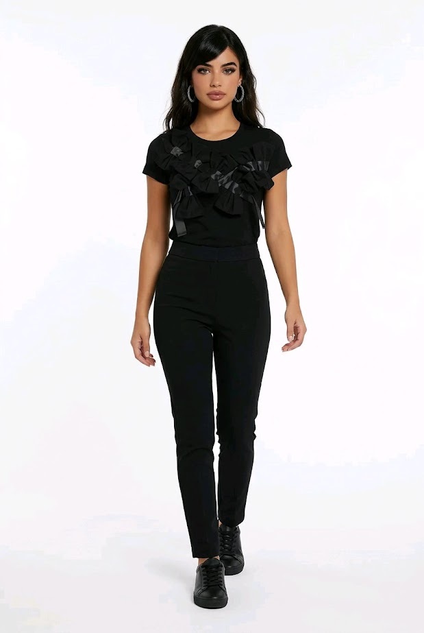 Dit elegante T-shirt voegt een verfijnde twist toe aan je outfit dankzij de strikjes die sierlijk van de schouder over de buste naar de zijkant lopen. De flatterende pasvorm maken het zowel comfortabel als stijlvol. verkrijgbaar in wit, zwart, roze.