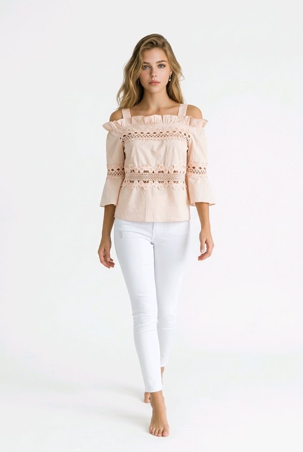 Roselva Roze Top - Kant - Off-Shoulder