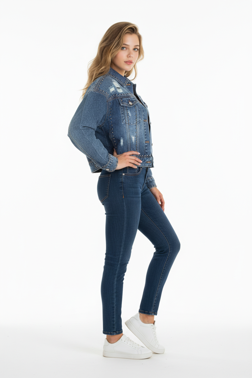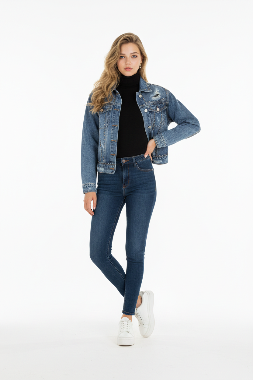 BeschrijvingRoxelle – Raw Used Denim Jack Met Studs