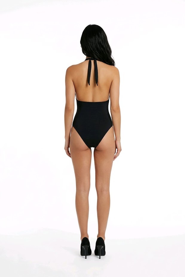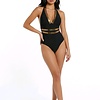 Het Serena badpak combineert elegantie en glamour met verfijnde gouden strepen en verstelbare halter strikbandjes. Uitneembare cups zorgen voor een comfortabele en flatterende pasvorm.