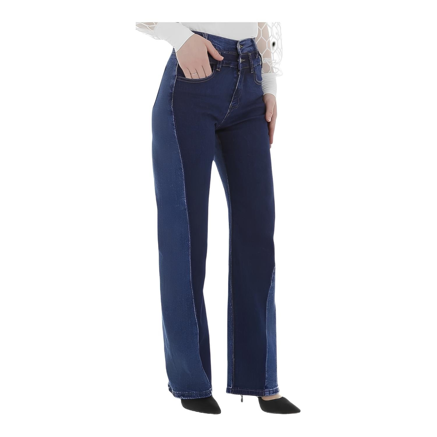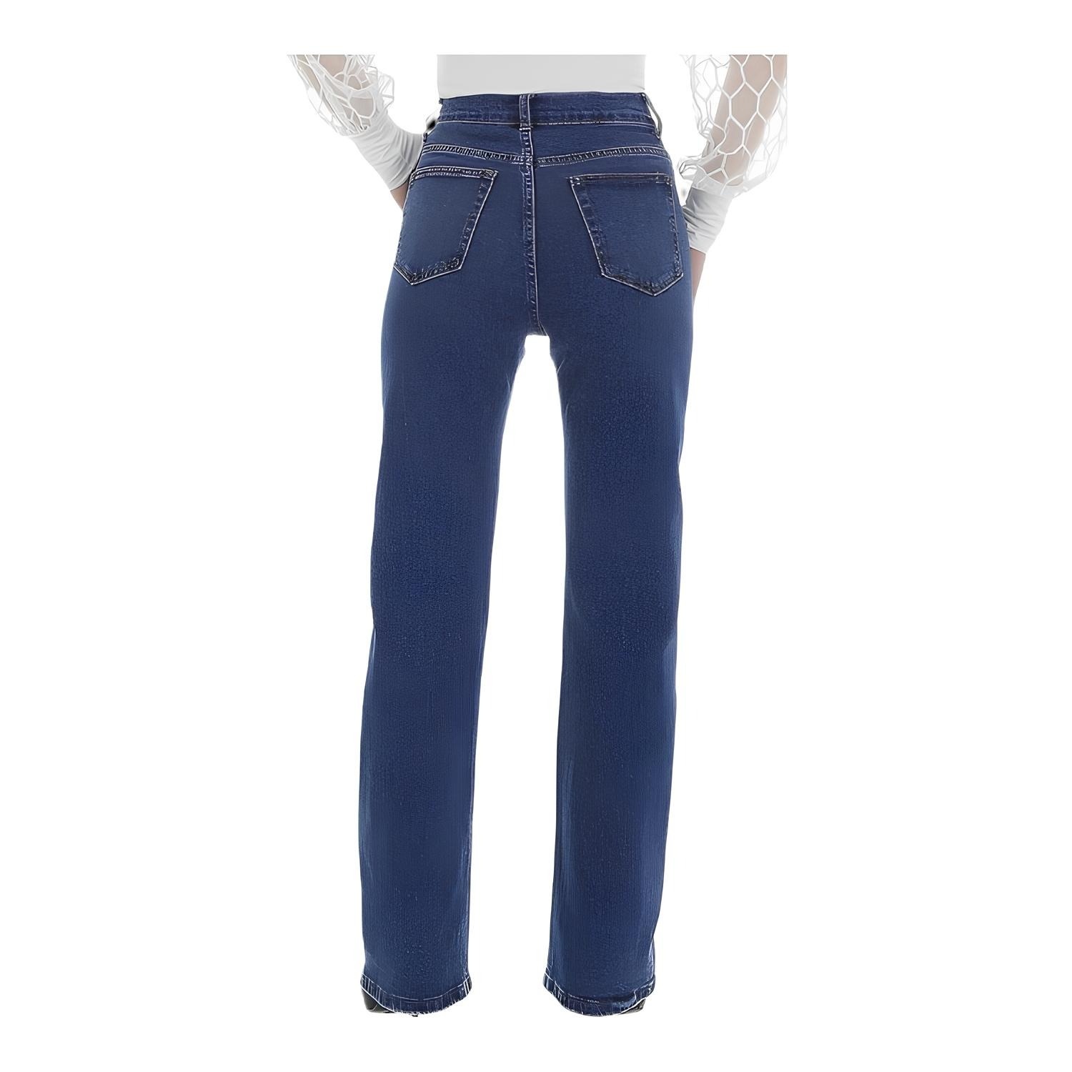 Deze twee-tonen denim broek combineert een moderne look met een slankmakend effect dankzij een lichte verticale baan op donkere denim. Hoge taille, stretch en functionele zakken maken het een stijlvolle en comfortabele keuze.