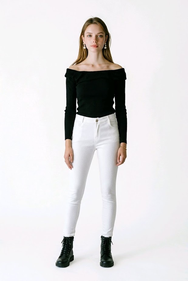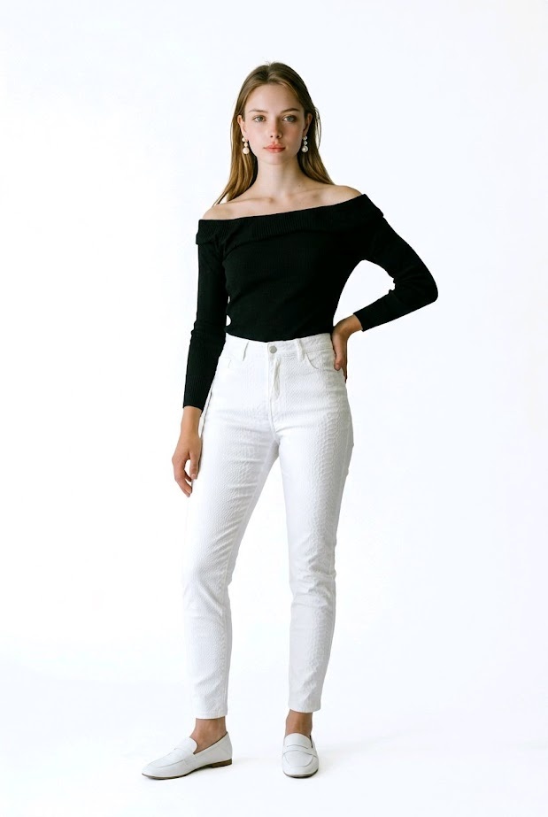 BeschrijvingValentina – Witte Tregging Met Python Structuur