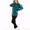 Veloria is een verfijnde trui met opengewerkte mouwen die zorgen voor een subtiel en luchtig effect. De satijnen strikken bovenaan de mouwen geven het model een elegante en vrouwelijke uitstraling. De diepe petrolkleur versterkt het stijlvolle karakter.