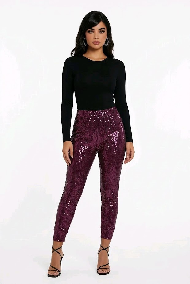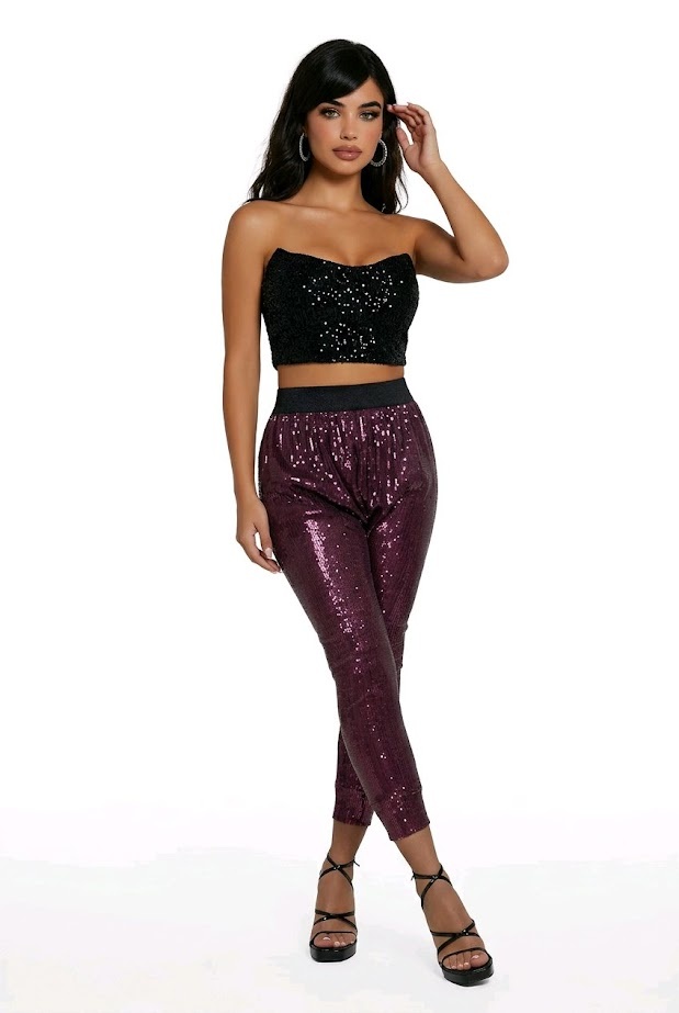 Zara is een bordeaux harembroek met sprankelende pailletten voor een glamoureuze uitstraling. Het losvallende model en de elastische tailleband zorgen voor optimaal comfort. Perfect voor een feestelijke look met een stijlvolle twist.