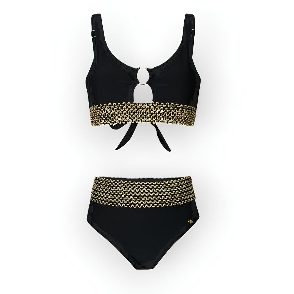 BeschrijvingZaraya | Bikini Set - Gouden Gestikte Banden