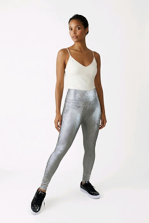 De Zenia legging combineert een luxueuze 3D python-structuur met een subtiele glans voor een krachtige, edgy look. Aansluitende pasvorm en stretchstof .