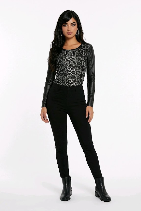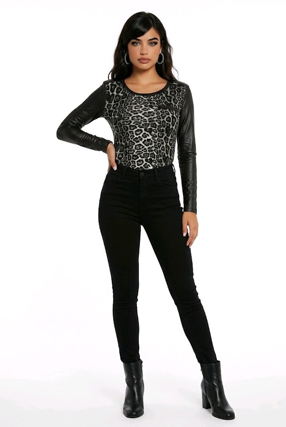 BeschrijvingZerina Luipaard Top - Lederlook Mouwen